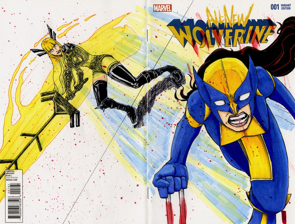 Traditional pencil, pen, paper and marker illustration of an "All-New Wolverine" #1 blank cover. Limited 1 of original artist cover artwork.